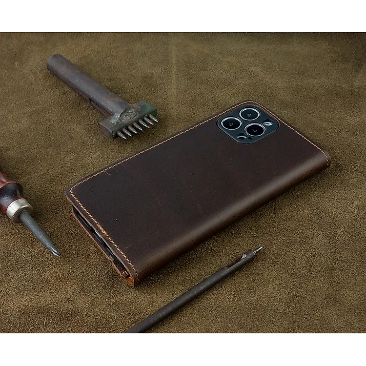 Bao Da cho Iphone 13 Pro Max Handmade Da Bò Thật