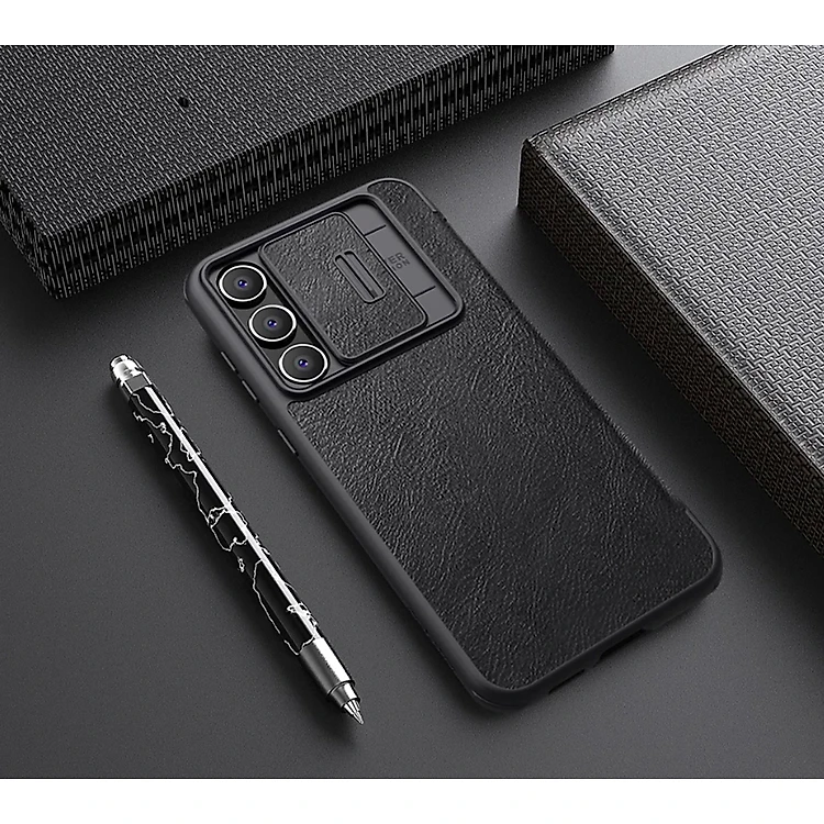 Bao da cho SamSung Galaxy S24 FE chính hãng Nillkin QIN có nắp trượt bảo vệ camera sau - Hàng chính hãng