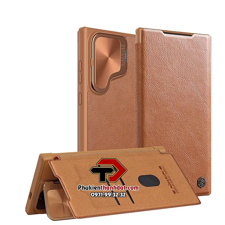 Bao da cho SamSung Galaxy S24 Ultra chính hãng Nillkin Qin Prop Leather có ngăn cài thẻ ATM, thẻ chung cư, chống sốc, có nắp đậy camera sau và chân chống - Hàng chính hãng