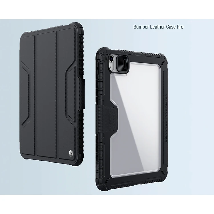Bao da chống sốc bảo vệ camera cho iPad Gen 10 10.9inch 2022 hiệu Nillkin Bumber Pro có ngăn đựng bút chống va đập, mặt lưng show Logo táo, cơ chế smartsleep, nắp bảo vệ Camera 1.1mm - hàng chính hãng