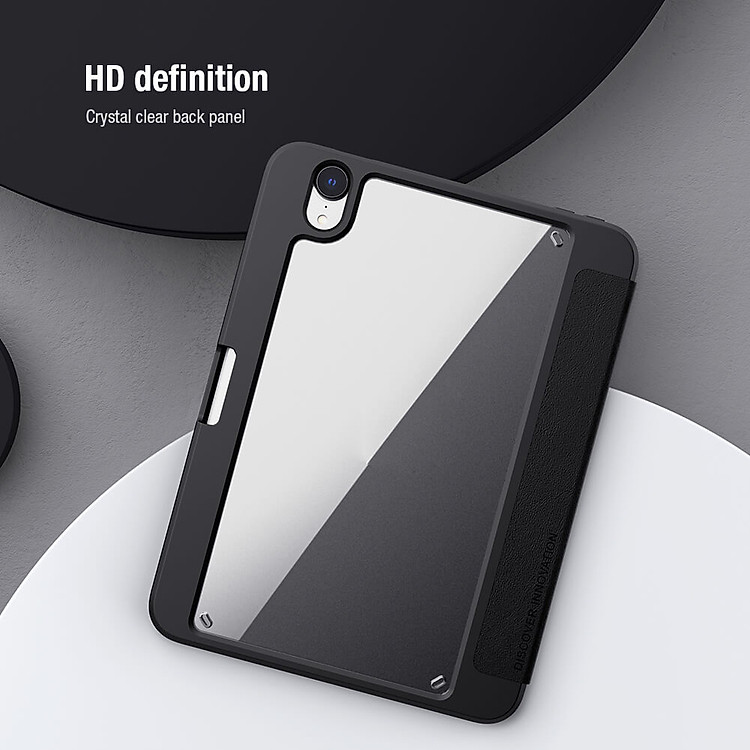 Mặt lưng Bao da chống sốc cho iPad Mini 6 hiệu Nillkin Bevel có ngăn đựng bút được thiết kế trong suốt giúp phô diễn vẻ đẹp của chiếc iPad Mini 6 của Bạn. Đep thì phải khoe :D