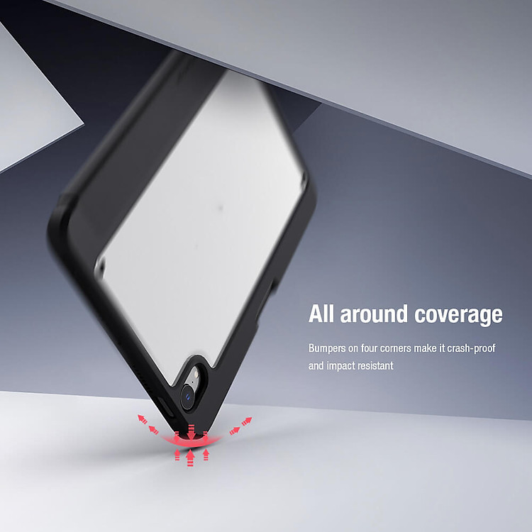 Bao da iPad Mini 6 chống sốc hiệu Nillkin Bevel có ngăn đựng bút với Phần ốp lưng chống sốc bao phủ xung quanh cạnh viền bởi một lớp cao su chống sốc, giúp tăng khả năng chống va chạm và va đập vào máy. Tăng độ bền cho máy trong quá trình sử dụng.