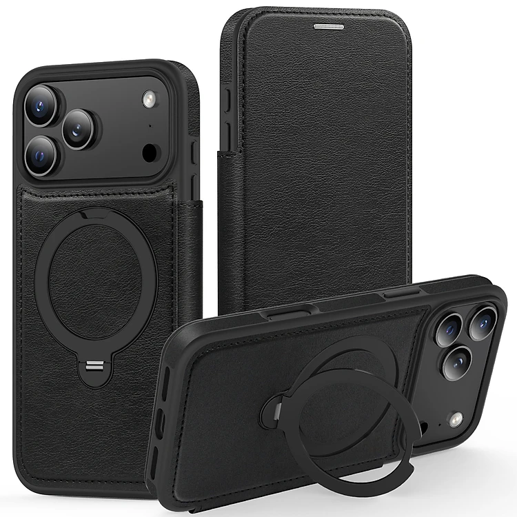 Bao da dạng ví 17 pro max có ngăn đựng thẻ nghe nhạc chống sốc tất cả trong 1 đẹp bền sang - hàng nhập