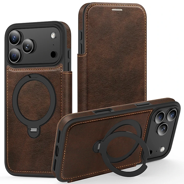 Bao da dạng ví 17 pro max có ngăn đựng thẻ nghe nhạc chống sốc tất cả trong 1 đẹp bền sang - hàng nhập