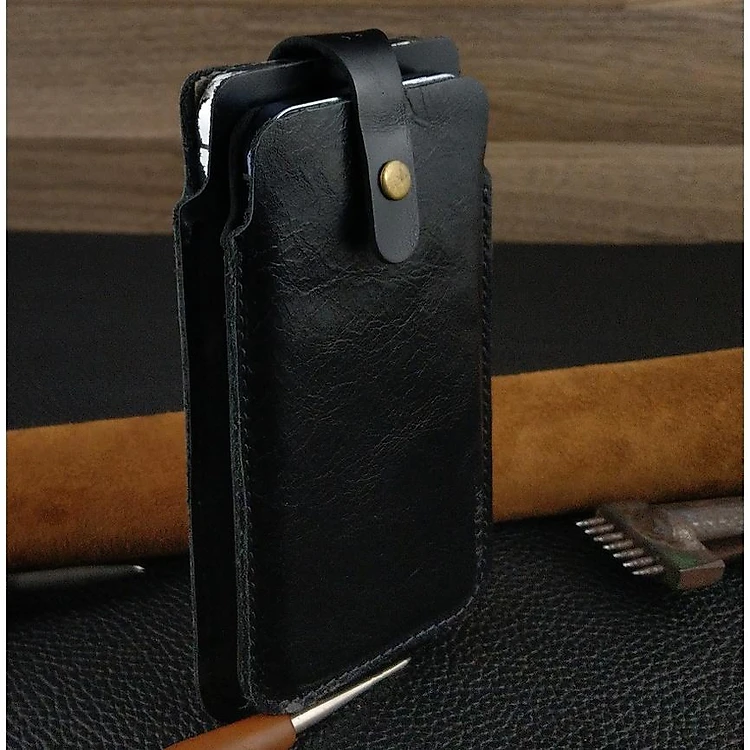 Bao da để 2 điện thoại cho Iphone 12 pro max, 13 pro max, 14 pro max da bò thật