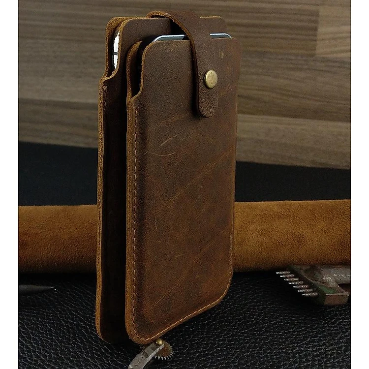 Bao da để 2 điện thoại cho Iphone 12 pro max, 13 pro max, 14 pro max da bò thật