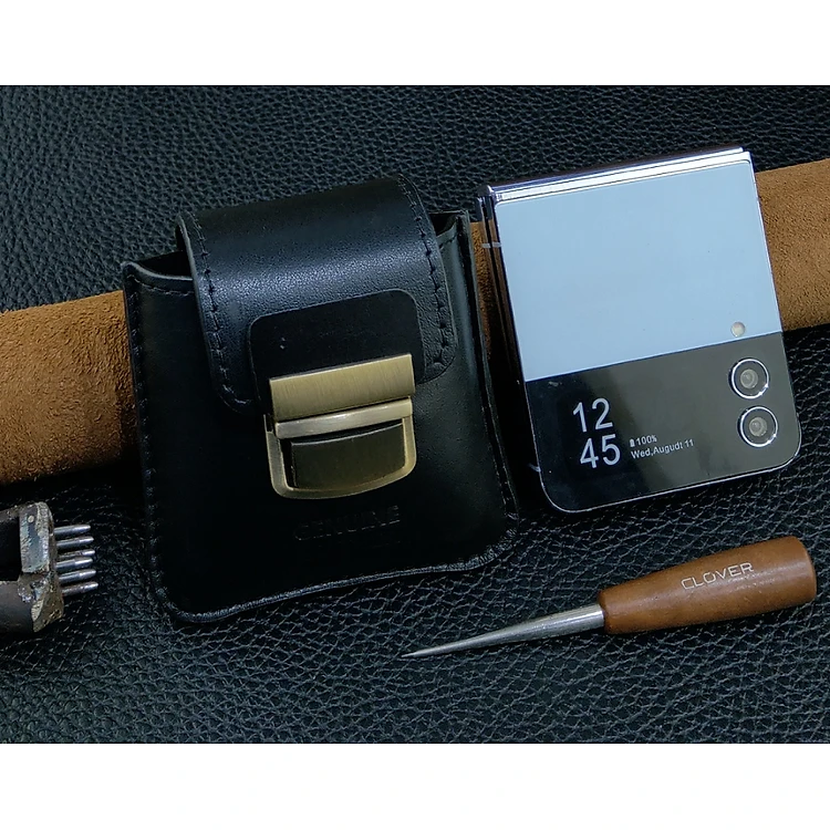 Bao da đeo lưng và cầm tay IONECASE Z Flip, Z Flip3,4,5 da bò thật may thủ công - Hàng chính hãng