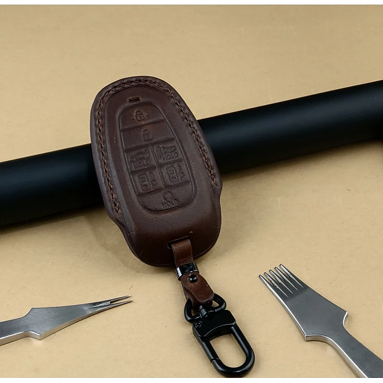 Bao da ép phom Handmade chìa khóa xe ô tô Hyundai TUCSON SANTAFE 7 nút bấm da bò thât giá tận xưởng (có bán sỉ) - hàng chính hãng