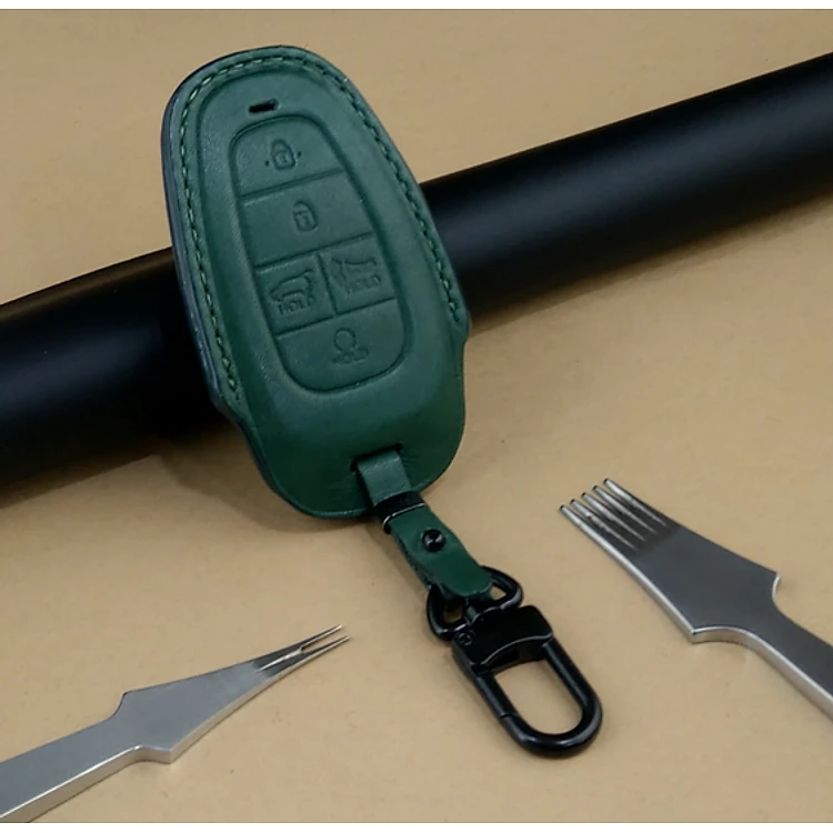 Bao da ép phom Handmade chìa khóa xe ô tô Hyundai TUCSON SANTAFE SONATA 5 nút bấm da bò thât giá tận xưởng (có bán sỉ) - hàng chính hãng