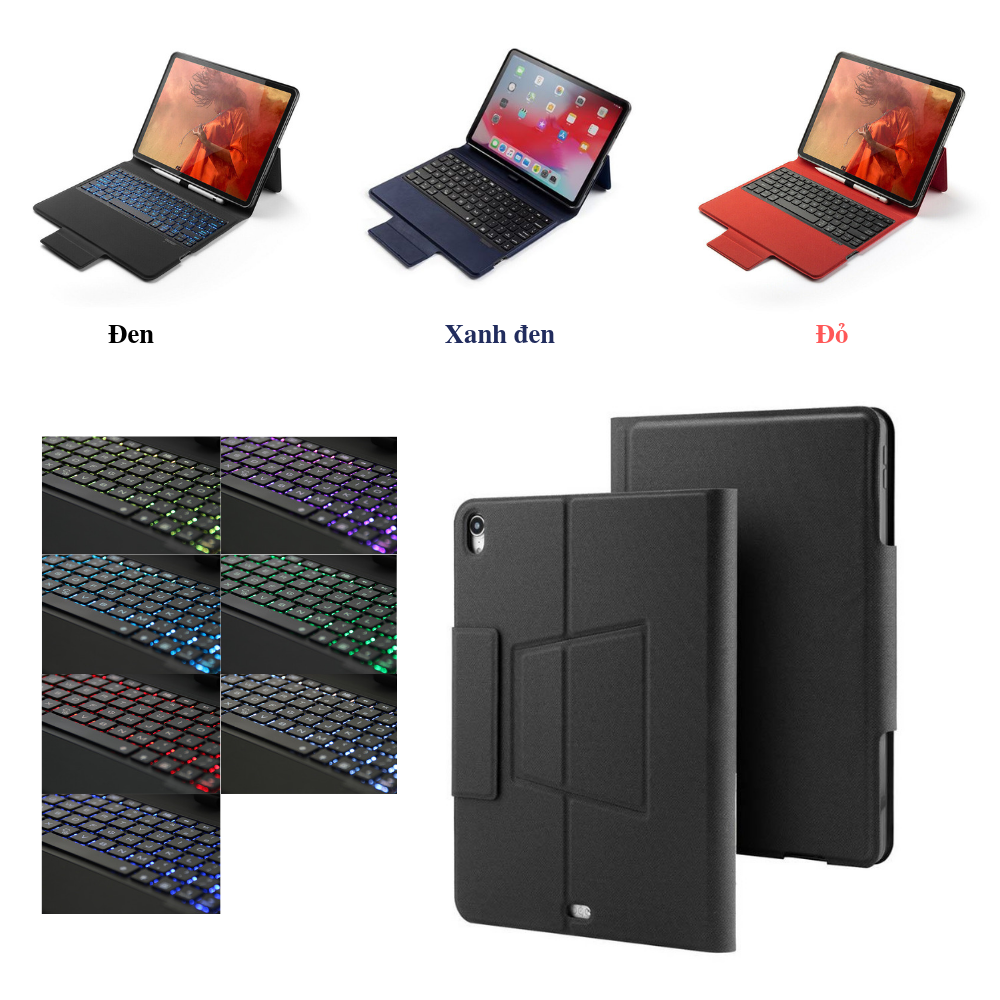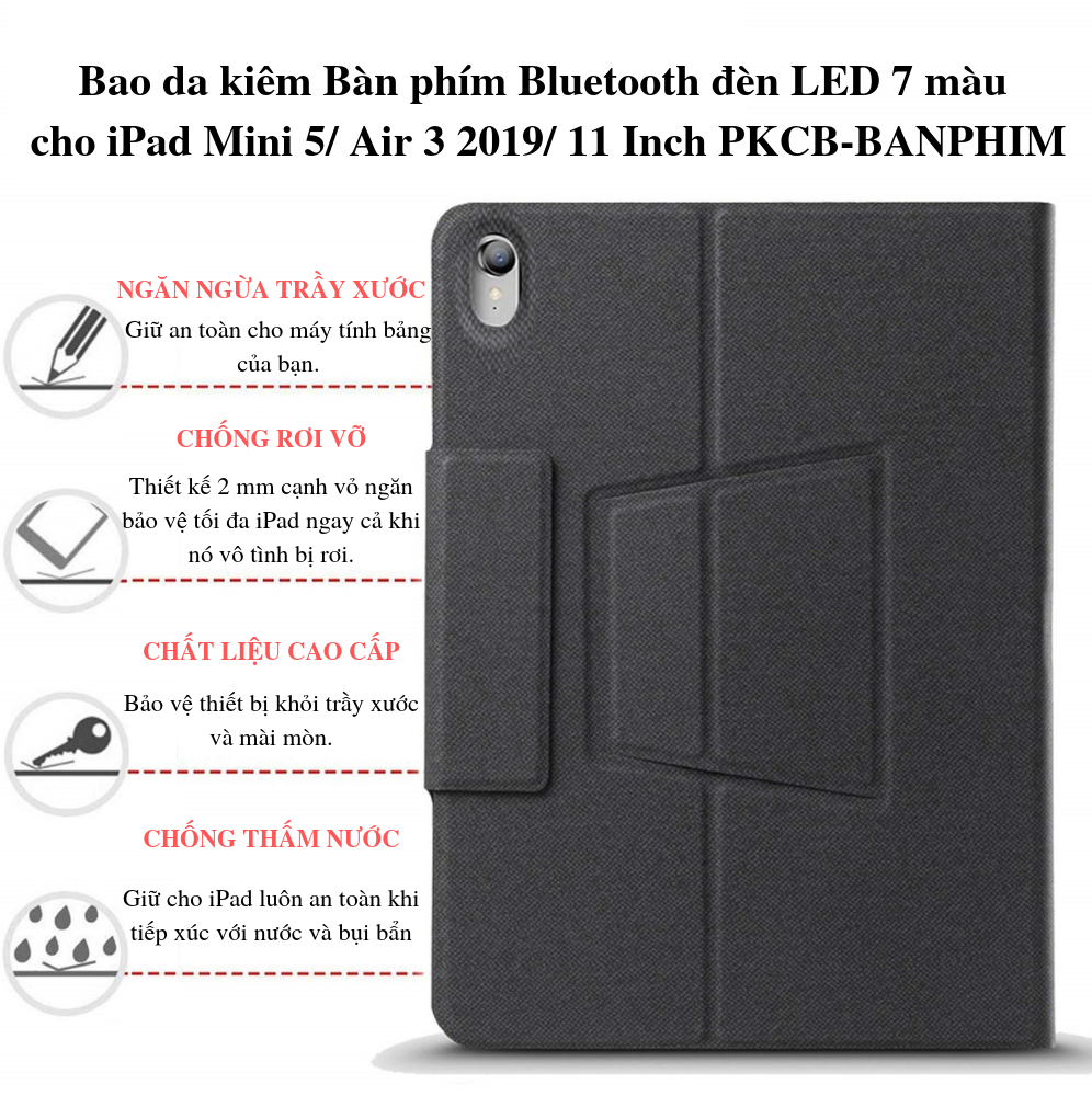 Bao da kiêm Bàn phím Bluetooth đèn LED 7 màu cho iPad Mini 5/ Air 3 2019/ 11 Inch/ Pro 10.5 PKCB-BANPHIM