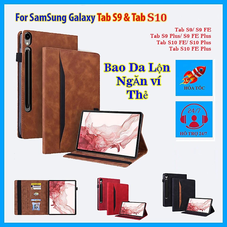 Bao Da Lộn Cao Cấp Cho Samsung Galaxy Tab S10 FE, S10 FE Plus, S10 Plus và S10 Ultra – Mềm Mịn, Chống Trầy, Thiết Kế Sang Trọng, Tích Hợp Ngăn Ví và Cài thẻ - hàng chính hãng