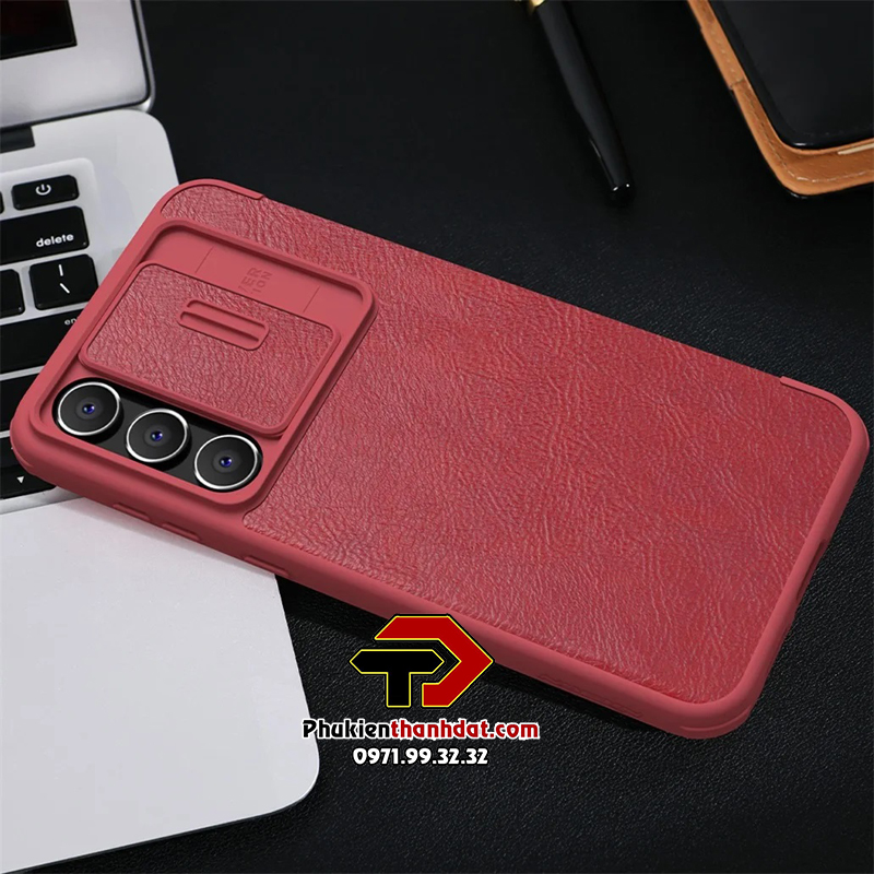 Bao da SamSung Galaxy S23 FE chính hãng Nillkin QIN có ngăn cài thẻ ATM và phần trượt bảo vệ camera sau chắc chắn - Hàng chính hãng