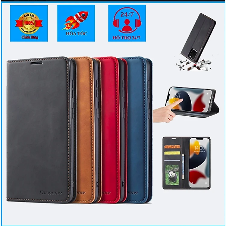 Bao Da Ví Da Bò Non Dành Cho iPhone 14 Pro Max / 14 Pro / 14 Plus / 14 Chính Hãng Forwenw Có Nam Châm Hít, Ngăn Đựng Thẻ, Ví Tiền Tiện Lợi - Hàng Nhập Khẩu