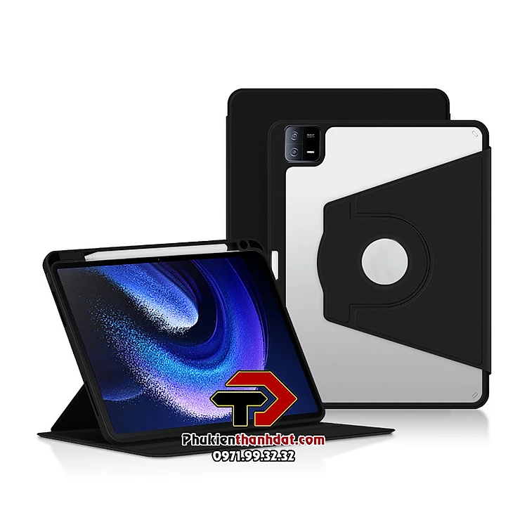 Bao da xoay 360 độ cho Xiaomi Pad 6 Pro, Xiaomi Pad 6 chống sốc, có ngăn đựng bút, 2 kiểu dựng hiệu GREENCAS - Hàng chính hãng