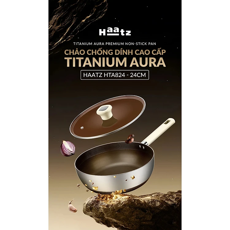 (Bảo Hành 5 Năm) Chảo Chống Dính Sâu Lòng Titanium 24cm Aura Haatz HTA824 Kèm Vung Kính - Hàng Chính Hãng