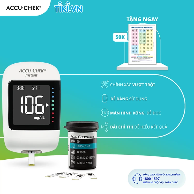 [Bảo Hành Trọn Đời] Máy Đo Đường Huyết ACCU-CHEK Instant Kèm Hộp 50 Que Thử Đường Huyết ACCU-CHEK Instant