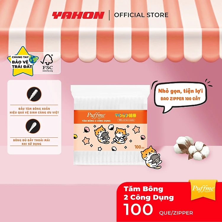 Bao Tăm Bông 2 Công Dụng PUFFME, 100 Que/Bao