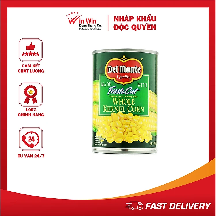 Bắp Hạt Đóng Hộp Del Monte 420g - Thương Hiệu Mỹ, SX Thái Lan | Del Monte Whole Kernel Corn 420g