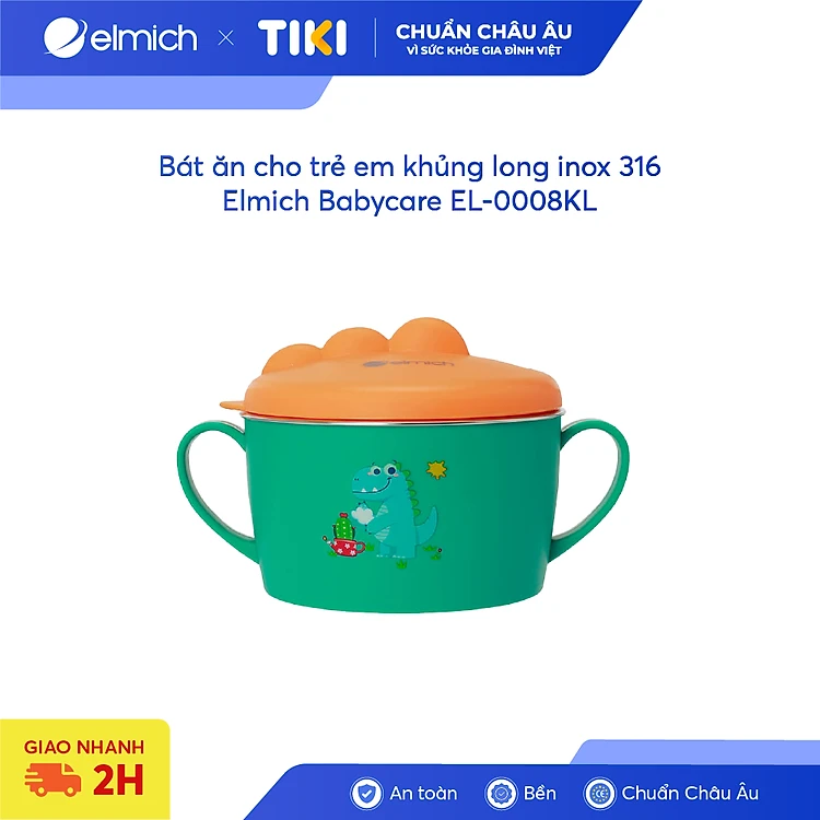 Bát ăn cho trẻ em khủng long inox 316 Elmich Babycare EL-0008KL
