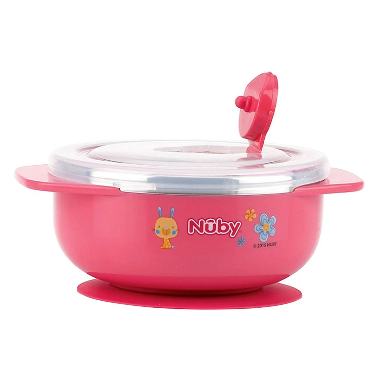 Bát Ăn Dặm Giữ Nhiệt Inox Đế Hút Chân Không Nuby 5572 - Hồng