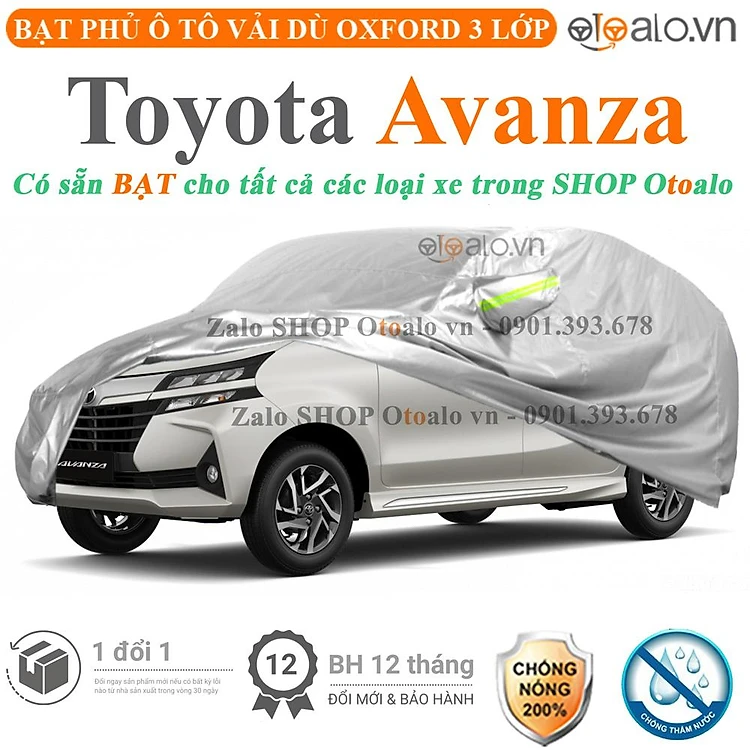 Bạt phủ xe ô tô Toyota Avanza đời xe 2000 2001 2002 2003 2004 2005 2006 2007 2008 2009 2010 2011 2012 2013 2014 2015 2016 2017 2018 2019 2020 2021 2022 2023 2024 2025 2026 2027 2028 2029 2030 cao cấp.