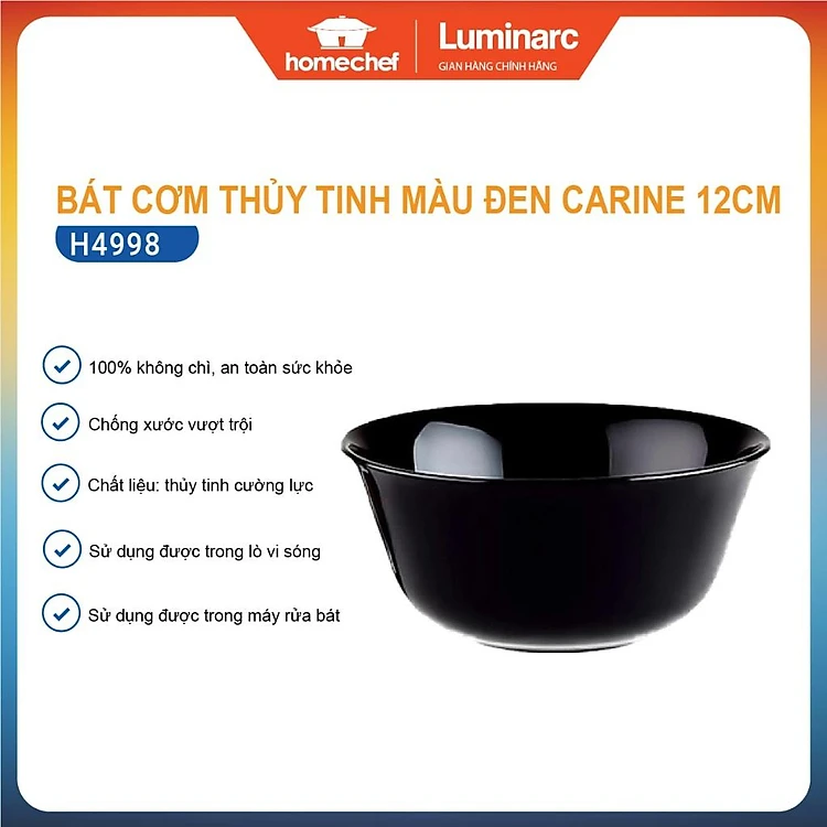 Bát (chén) ăn cơm thủy tinh Luminarc Carine màu đen 12cm H4998 | Hàng chính hãng
