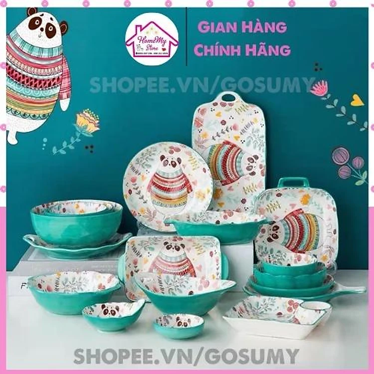 Bát Đĩa Decor bát ăn cơm Tô Sứ Bộ Chén Dĩa Dễ Thương Đẹp Cao Cấp Ăn Dặm Cho Bé hình Gấu Trúc