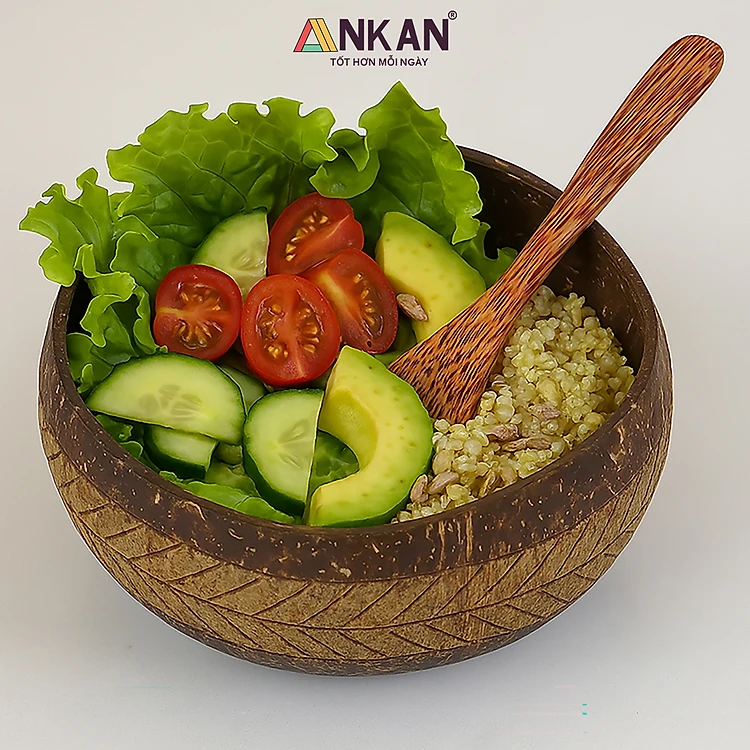 Bát Gáo Dừa Khắc Lá Cọ Thủ Công – Đựng Ngũ Cốc, Sinh Tố, Chè, Bánh Kẹo, Decor Spa