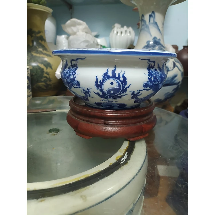 Bát hương dáng lựu vẽ rồng men lam size nhỏ