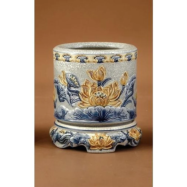 Bát hương thờ gia tiên men rạn giả cổ, họa tiết đắp nổi thủ công. Gốm sứ Bát Tràng cao cấp.