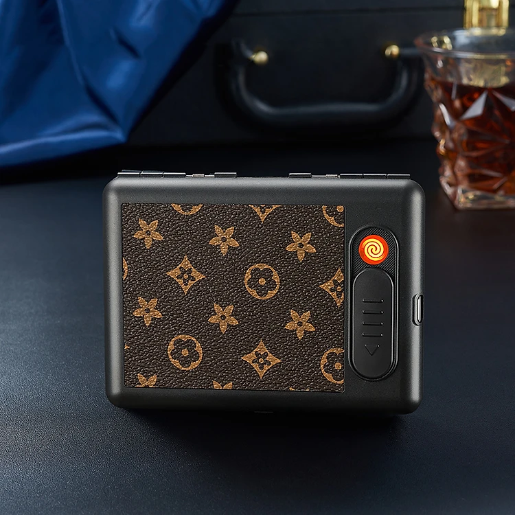 Bật Lửa Điện Kiêm Hộp Đựng Thuốc Kẹp 20Đ Hoa Văn M4 - Sạc Điện