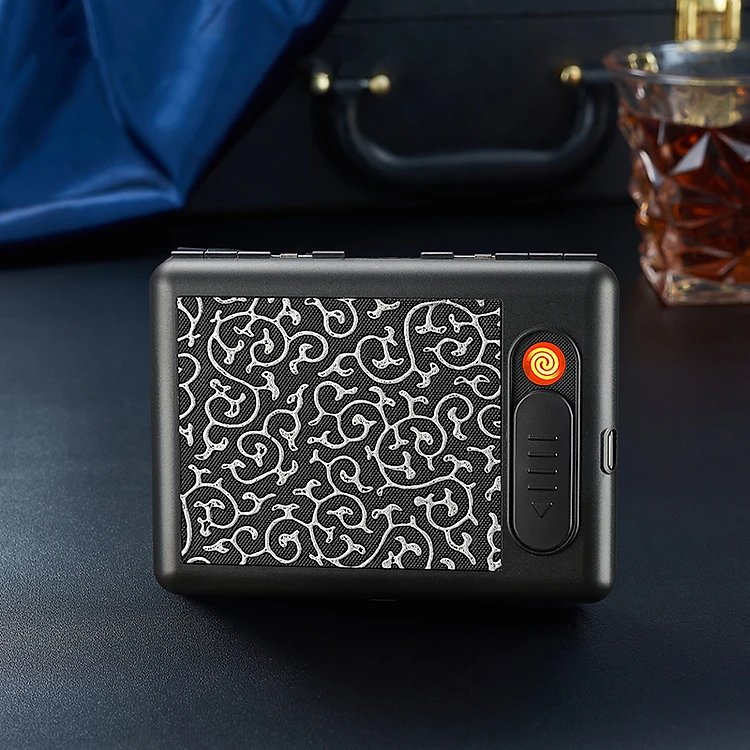 Bật Lửa Điện Kiêm Hộp Đựng Thuốc Kẹp 20Đ Hoa Văn M5 - Sạc Điện