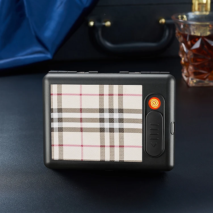 Bật Lửa Điện Kiêm Hộp Đựng Thuốc Kẹp 20Đ Vân Sọc - Sạc Điện