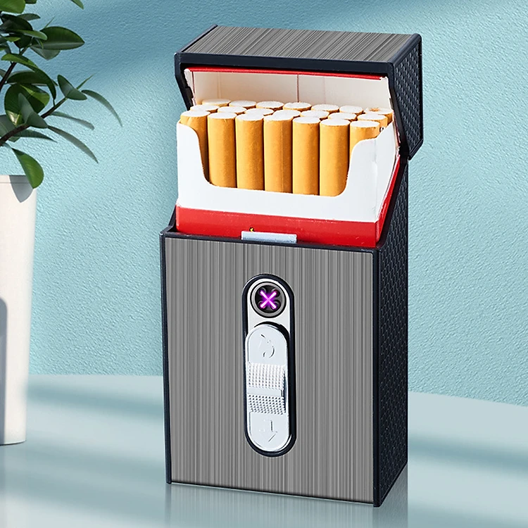 Bật Lửa Điện Tia Plasmas Kiêm Hộp Đựng Thuốc 20 Điếu Lớn Ngắn - Sạc Điện