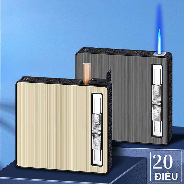 Bật Lửa Hộp Đựng Thuốc 20 Điếu Vân Xước 3 Màu - Xài gas