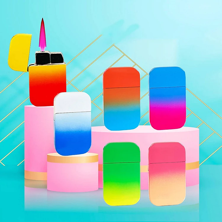 Bật Lửa Khè Siêu Mỏng Màu Cầu Vòng - Xài Gas (giao màu ngẫu nhiên)