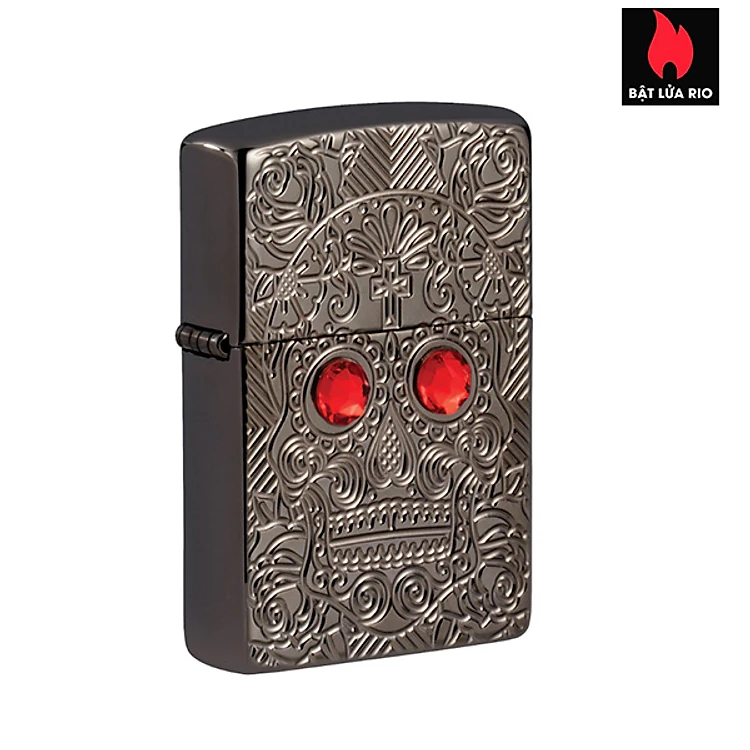 Bật Lửa Zippo 49300 – Zippo Day Of The Dead Skull Armor High Polish Black Ice