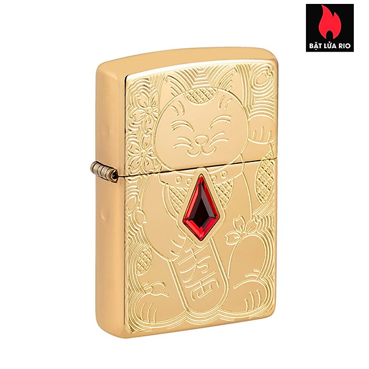 Bật Lửa Zippo 49802 – Zippo Lucky Cat Design Emblem Attached Armor High Polish Brass