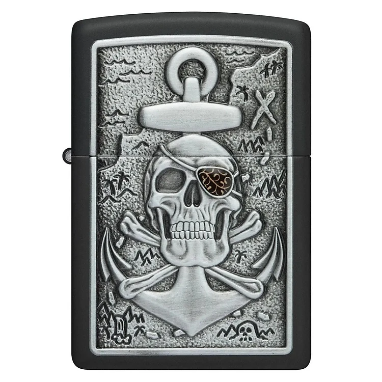 Bật Lửa Zippo In Hình Đầu Lâu Mỏ Neo Nổi Skull Anchor Emblem Design Chính Hãng Mỹ - Thiết Kế 3D Nổi, Sơn Đen Nhám, Chống Gió, Phong Cách Bụi Bặm