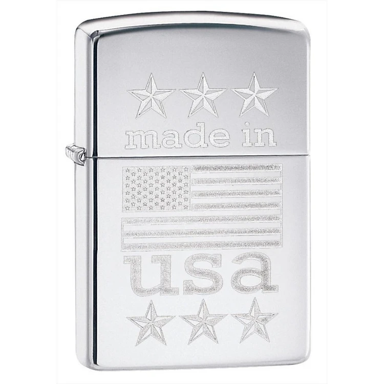 Bật Lửa Zippo Made In The USA With Flag Polished Chrome