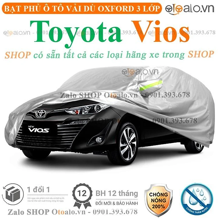 Bạt phủ ô tô dành cho xe Toyota Vios 3 lớp cao cấp