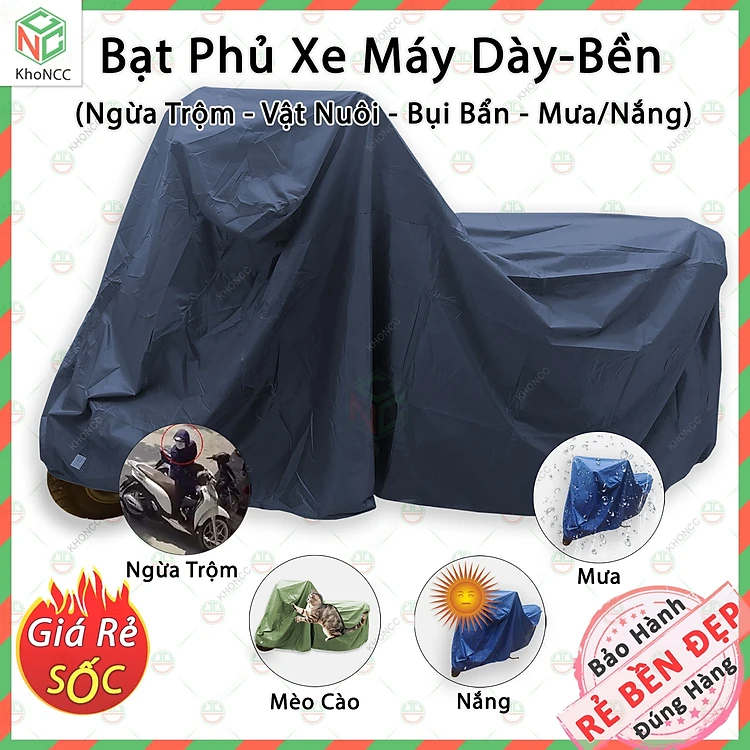 (Dày Bền) Bạt Phủ Áo Trùm Xe Máy Vải Dù Cỡ 2 - Hàng Chính Hãng KhoNCC - Che Mưa Nắng Thời Tiết Khắc Nghiệt Loại Lớn Cho Dòng Xe Tay Ga - Xe Số Thông Dụng - KhoNCC-BPXVD (Nhiều Màu)