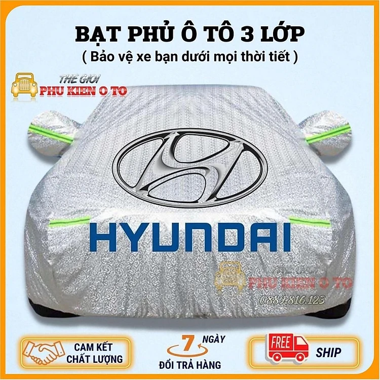 Bạt Phủ Xe Ô Tô Hyundai I10, I20, I30, Accent, Santafe, Tucson, Kona, Getz, Avante, Elantra, Sonata