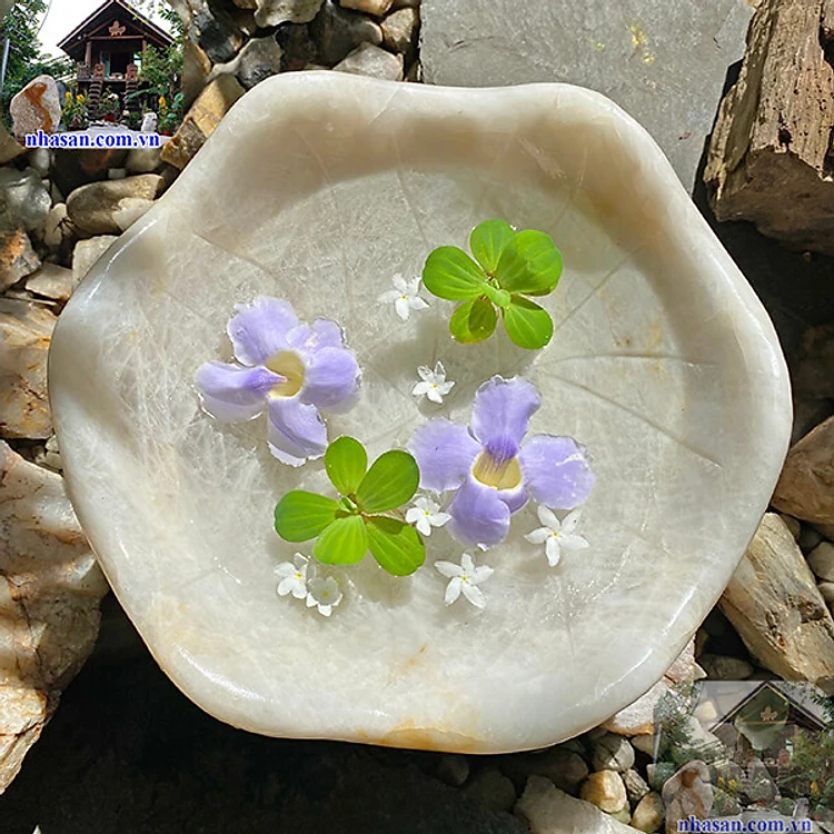 Bát thả hoa tụ lộc đá thạch anh trắng NHA SAN BTH02 Tượng trưng cho sự thịnh vượng, sung túc - 10.4kg (33 x 13 cm)