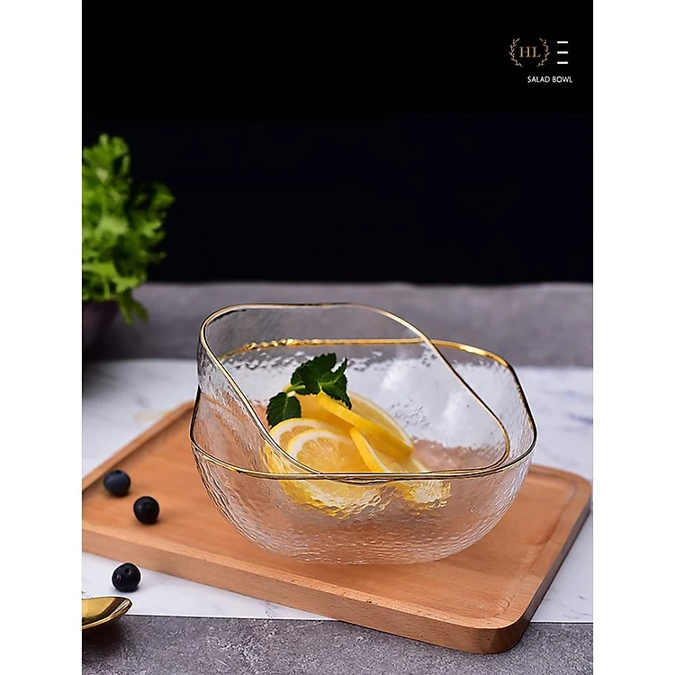 BÁT THỦY TINH VUÔNG DECOR KẺ VÀNG KIM CAO CẤP | BÁT THỦY TINH SẦN CAO CẤP KIỂU HOME LUXURY | HÀNG CÓ SẴN | 2 DUNG TÍCH