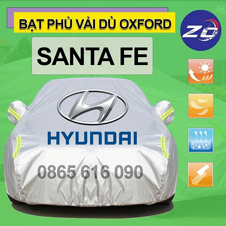 Bạt trùm xe Hyundai Santa Fe vải dù oxford cao cấp, áo bạt phủ trùm che kín che nắng,mưa bảo vệ oto xe hơi