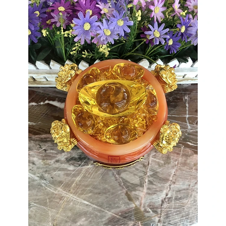 Bao gồm: Bát tụ bảo, 5 thỏi ngân lượng nhỏ và 1 thỏi ngân lượng lớn kèm đá thạch anh vụn trong bát