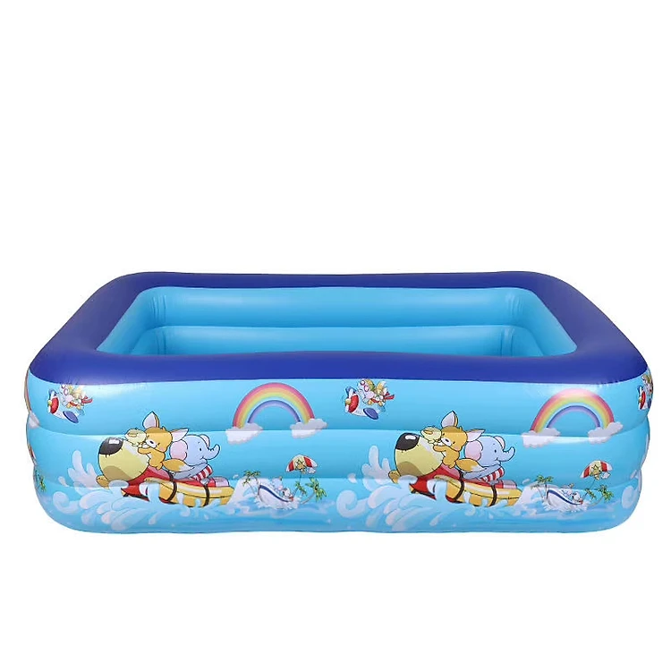 - Kết cấu bể chắc chắn với dạng chữ nhật, có 3 vòng bơm hơi xếp chồng lên nhau, thành bể bơm hơi dầy, có độ đàn hồi cao, tránh bé bị đau khi va đập mạnh.