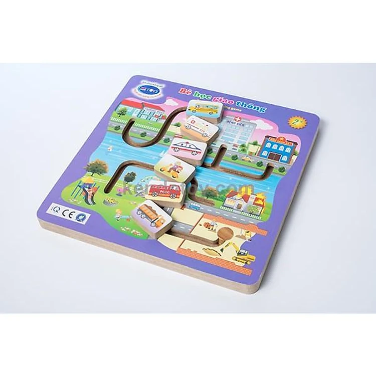 Bé học giao thông qua đồ chơi gỗ an toàn