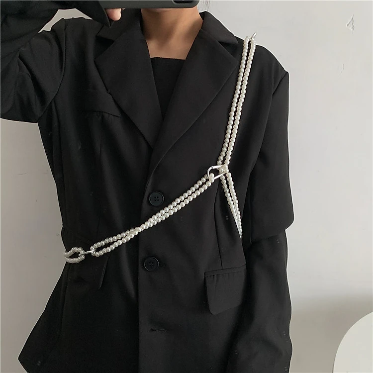 Belt xích thắt lưng body chain ngọc trai sáng bóng phối nhiều kiểu đeo mix match đồ phong cách fashion cực cool